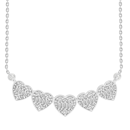 LADIES NECKLACE 0.25CT ROUND/BAGUETTE DIAMOND 14K WHITE GOLD
