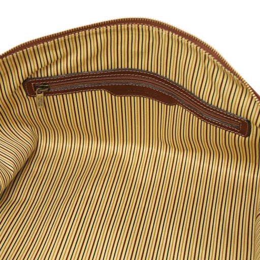 Tl Voyager - Travel Leather Duffle Bag With Pocket On The Back Side - Small Size (TL141250)